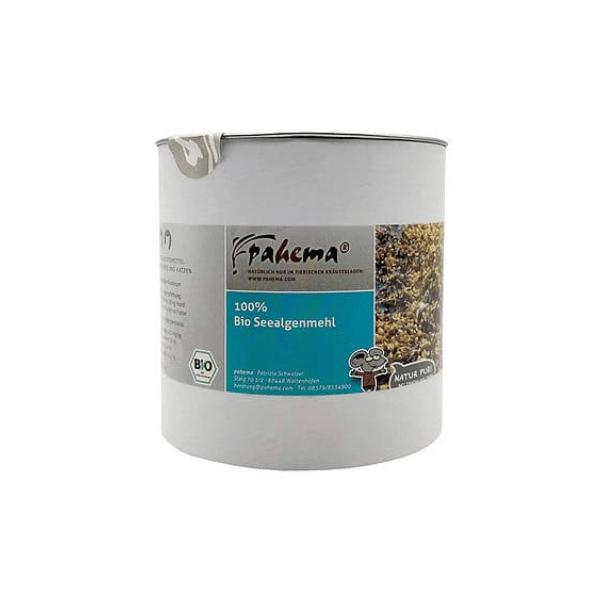 - Jod aus Bio Seealgenmehl, weil Fleisch und Knochen kaum Jod enthalten und die Schilddrüse ohne diese gezielte Zufuhr nicht optimal arbeiten kann.